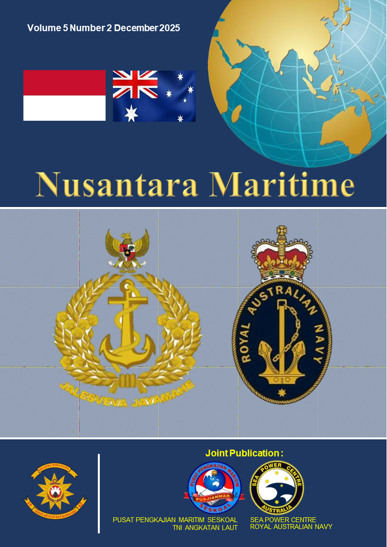 Indonesian Maritime Journal, Volume 11, Issue 4 (December 2023), explores the role of information technology in maritime defense, including smart defense and dual strategy approaches. This edition aims to provide valuable insights for stakeholders and maritime experts while welcoming constructive feedback to enhance future publications.